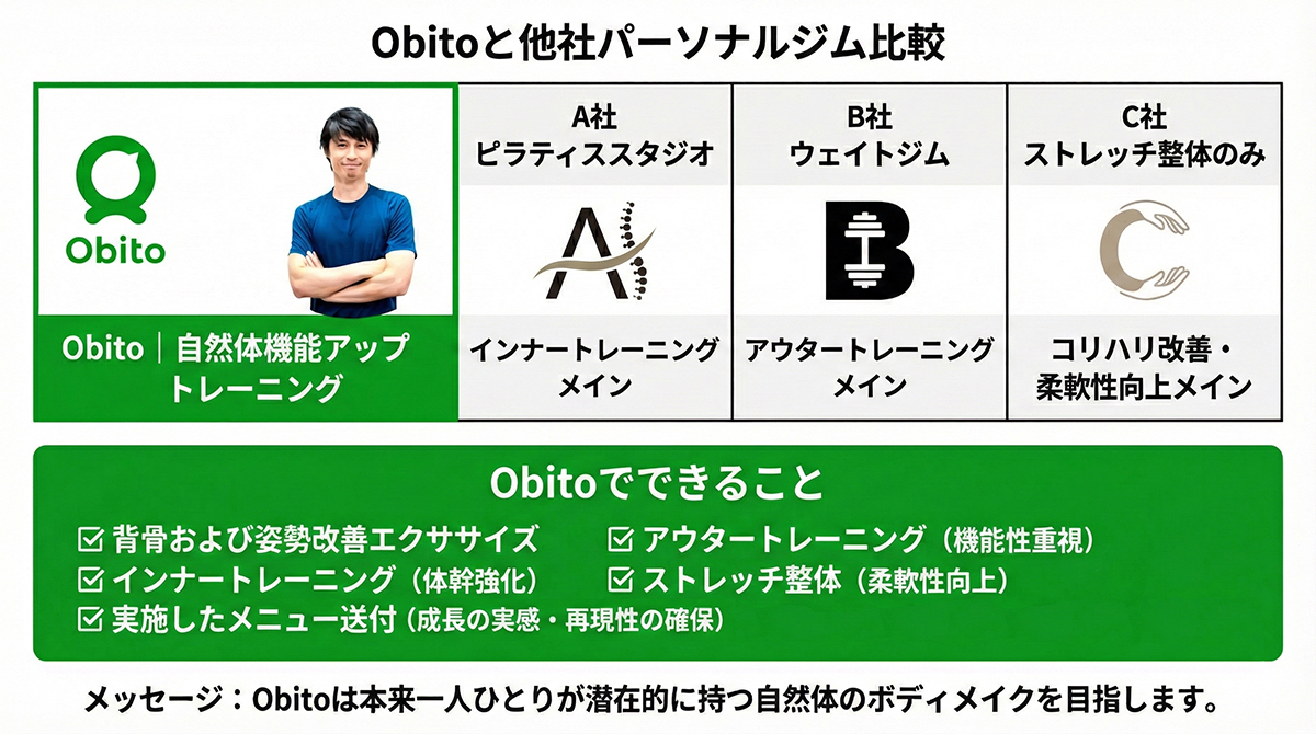 2004年から8年間埼玉・所沢にある「フィットネスクラブわらわら」でインストラクターやパーソナルトレーナーとして沢山の現場経験をさせて頂きました。その後、2012年からヘルスケアのベンチャー企業である「株式会社FiNC」に創業から入社して8年間ヘルスケアに関する様々な事業にたずさわりました。現在は、パーソナルジムObito永田町|千石|根津|落合、4店舗を経営しています。20年以上ボディメイクやダイエットをサポートしてきました。健康づくりやボディメイクに関して、一人でも多くの方のお役に立てれば嬉しいです。